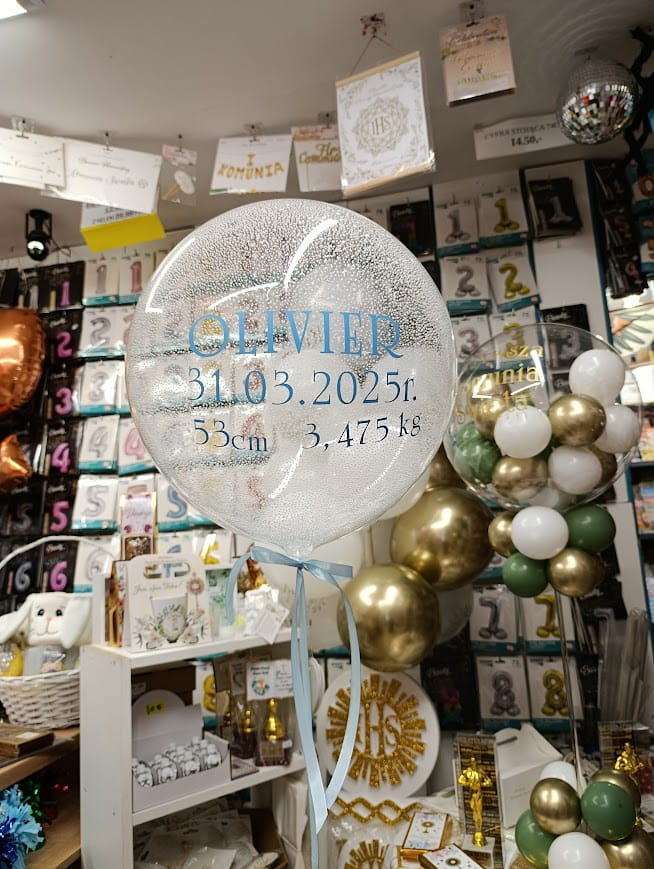 Ten balon jest przygotowywany indywidualnie na zamówienie. Ze względu na delikatność, wysyłka kurierem jest NIEMOŻLIWA.