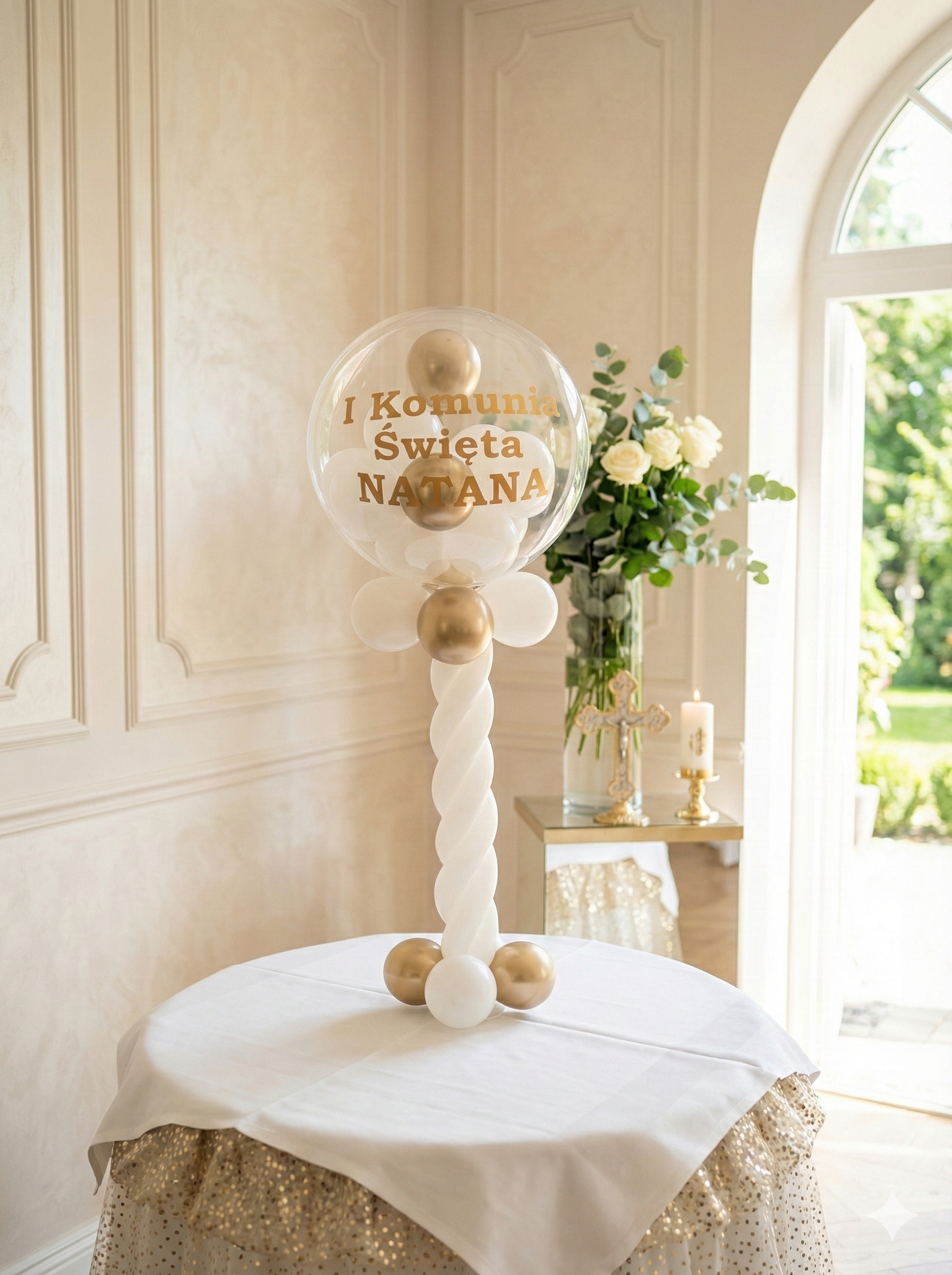Zapomnij o balonach na sznurkach, które plączą się w jedzeniu. Przedstawiamy rozwiązanie klasy Premium – dekorację stojącą, która łączy w sobie lekkość balonu z elegancją szkła. To najgorętszy trend na przyjęciach Weselnych, Komunijnych i Chrzcinach w tym sezonie.