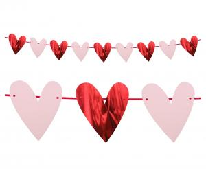 Projekt tej girlandy opiera się na pięknym, miłosnym kontraście. Na sznurku naprzemiennie rozmieszczono serca w dwóch wariantach: klasyczne, matowe w kolorze jasnego różu oraz wyraziste, pokryte błyszczącą, czerwoną folią metalizowaną. Te drugie fantastycznie odbijają światło (np. z lampionów lub świec), dodając całemu pomieszczeniu niesamowitego blasku! Dzięki uniwersalnej długości 200 centymetrów (2 metry), baner możesz łatwo zawiesić nad wezgłowiem łóżka, w domowym oknie lub na ścianie bezpośrednio za stołem przygotowanym do romantycznej kolacji.