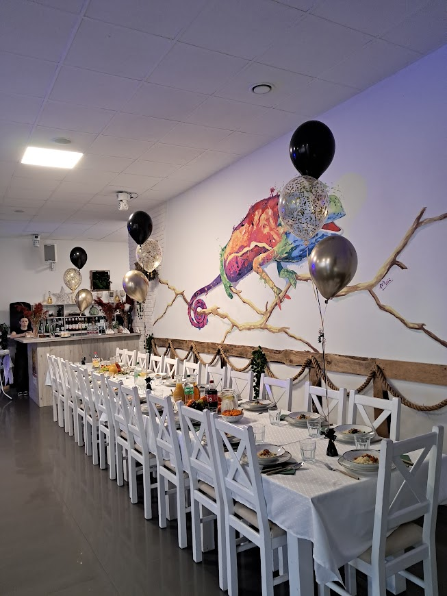 - Idealna Wysokość: To klucz do sukcesu. Wstążki docinamy tak, aby balony unosiły się powyżej linii wzroku siedzących gości. Dzięki temu dekoracja jest widoczna i efektowna, ale goście mogą swobodnie rozmawiać, widząc się nawzajem.