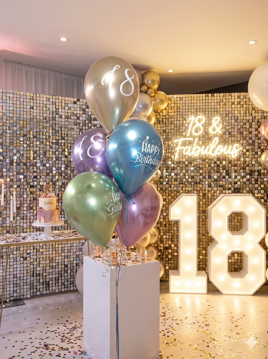 - 4+1: 4 balony bazowe (np. różowe) i 1 wyróżniający się (np. z konfetti lub nadrukiem).