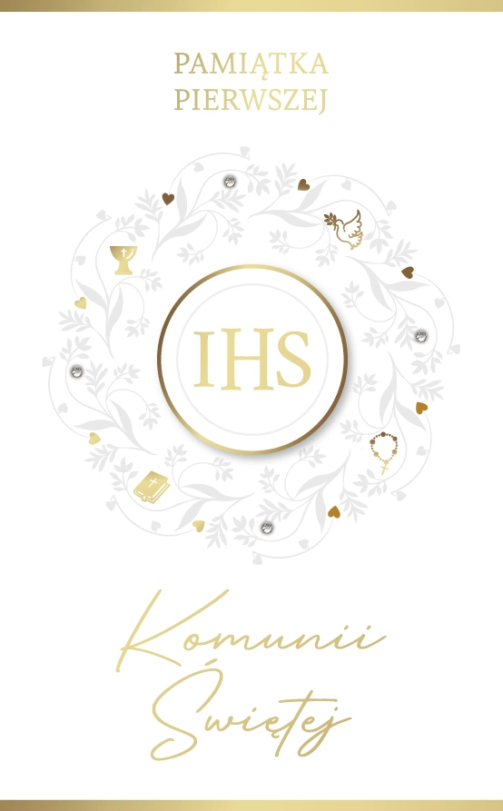 Pamiątka I Komunii Świętej | Kartka LUX Delikatny Wianek IHS