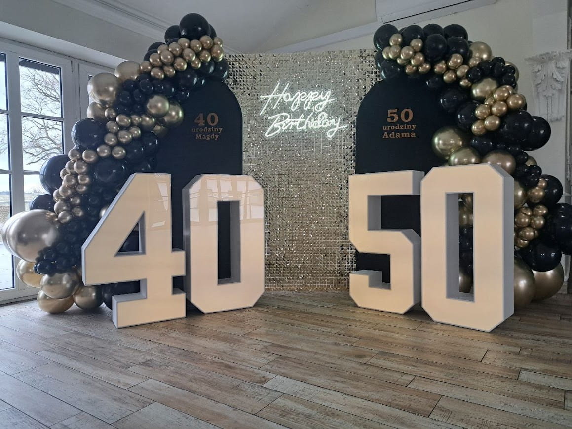 - **CYFRY LED RGB** (1 metr wysokości, idealne do ustawienia wieku jubilata).
