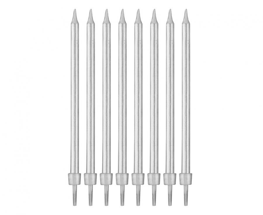 Świeczki srebrne z podstawkami 8 szt.